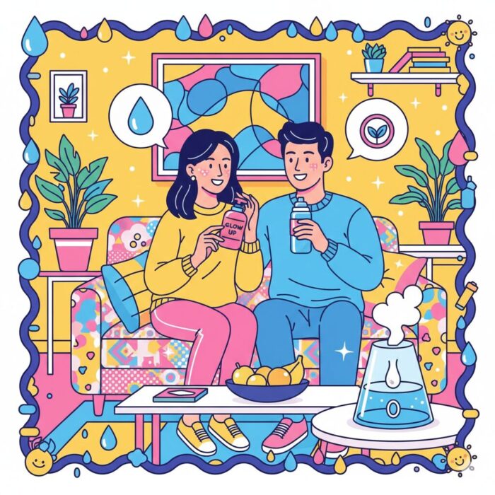対策の基本は、「加湿」と「こまめな水分補給」です。 お部屋の湿度は40〜60%をキープするのが理想的。