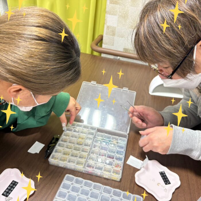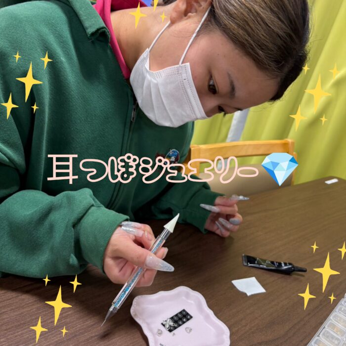 今回はレクリエーションで女性入居者様に耳つぼジュエリーレクを開催する事になった時の様子です!