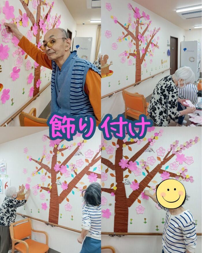 施設内で利用者様が桜の飾りつけをしてくださいました🌸