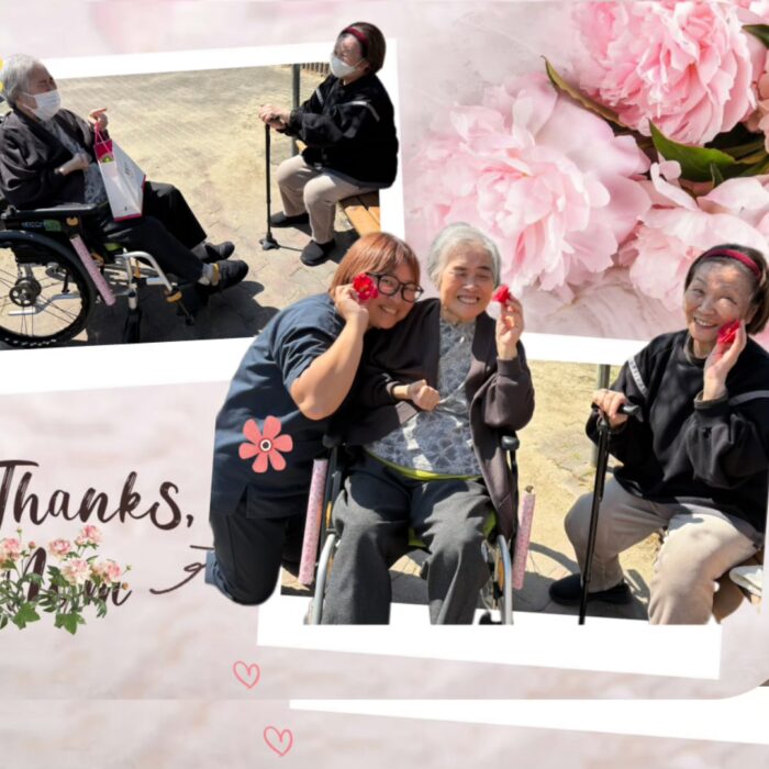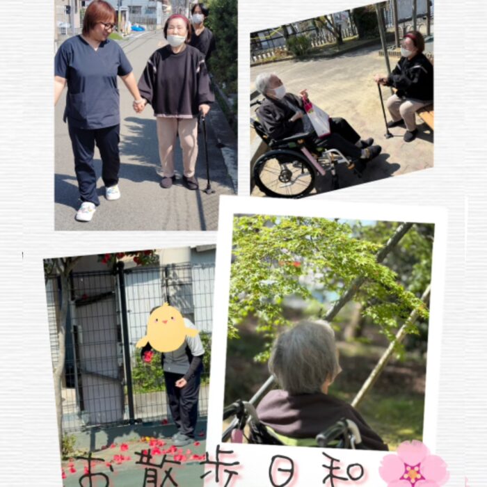 絶好のお散歩日和に入居者様もニコニコ笑顔😆