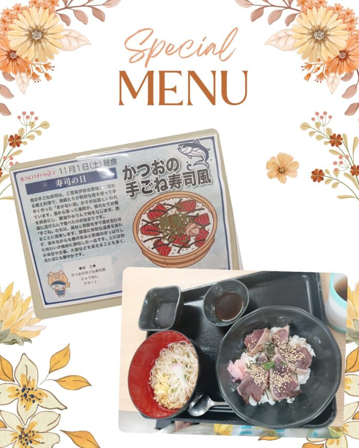 昼食は『かつおの手ごね寿司風』でした🐟🍴